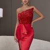 - Features: Frill trim, strapless, mini, zip-back, ruched